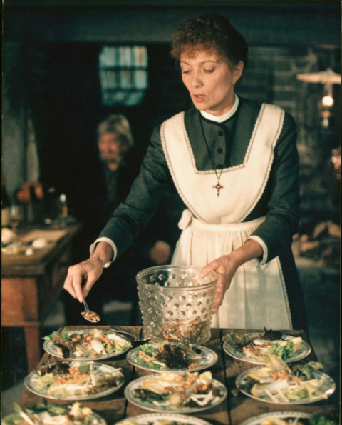 영화 '바베트의 만찬' 스틸 컷. 바베트가 요리를 접시에 담고 있다. 영프로덕션 제공