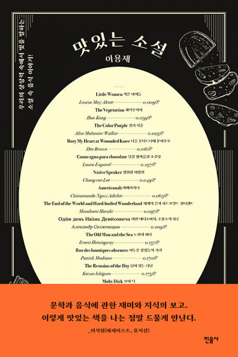 이 책을 고른 이유는 이용재라는 이름 때문이었다. 그는 맛집이 난무하는 이 시대에 독보적인 영역을 구축한 음식 평론가다. 단순한 감상평이 아니라 과학에 기반한 그의 이야기에 공감이 갈 때가 많았다. 공대에서 건축을 전공한 배경부터가 이 세계 사람들(?)과 달랐다. <맛있는 소설>은 어폐가 있는 제목이다. 첫 번째 이유는 소설이 아니기 때문이다. 음식 평론가이자 문학 애호가가 쓴 문학 속의 음식 관련 에세이다. 두 번째는 쓴맛을 보여 주는 데 주저함이 없어서다. 괜히 읽고 나면 상상 속의 그 음식이 맛없게 느껴질지도 모른다. 그럼에도 불구하고 음식과 문학을 좋아하는 이라면 이 책을 읽을 이유는 충분하다. 게다가 이용재는 진지한 척하지만 실은 나름의 유머를 즐기는 사람임에 틀림없다. 글을 보면 성격이 다 나온다.