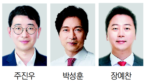 윤석열 대통령의 최측근, 이른바 ‘찐윤’으로 불리는 주진우(49) 전 대통령실 법률비서관, 박성훈(53) 전 해양수산부 차관, 장예찬(36) 전 국민의힘 청년최고위원이 부산 총선 출마를 공식화했다. 여권 내 차세대 리더로 꼽히는 세 사람은 공교롭게도 모두 해운대갑, 수영 등 보수 지지세가 강한 동부산권 출마를 원하면서 이들 사이에도 물밑 신경전이 벌어지는 양상이다. 대통령 측근의 ‘양지’ 출마에 대한 당 안팎의 복잡한 시선 속에 이들의 안착 여부에 지역 정가의 관심이 쏠린다.