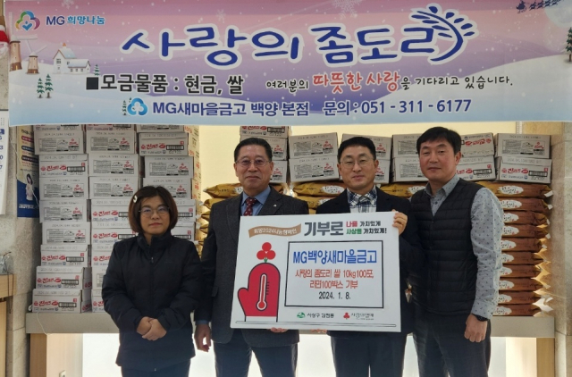 MG백양새마을금고(이사장 박창하)는 지난 8일 부산 사상구 감전동(동장 이갑진)에 사랑의 좀도리 운동 쌀 10kg 100포와 라면 100상자, 성금 50만 원을 전달했다.