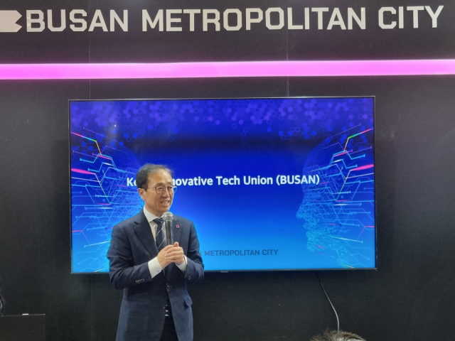 김광회 부산시 경제부시장이 지난 9일 미국 라스베이거스에서 열리는 'CES 2024'에서 에코델타 스마트시티 등 부산의 시책을 소개하고 있다. 부산시 제공