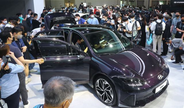 부산국제모터쇼가 올해부터 부산모빌리티쇼로 탈바꿈한다. 사진은 세계 최초로 현대자동차 ‘아이오닉 6’가 공개된 '2022년 부산국제모터쇼' 장면. 부산일보 DB
