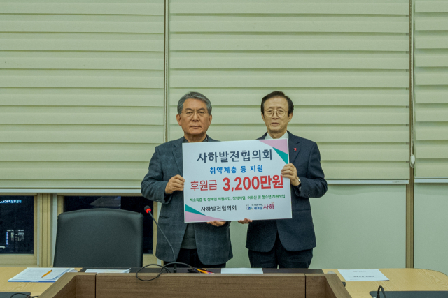 사하발전협의회(회장 이상률)는 지난 18일 정기총회에서 사하구(구청장 이갑준)에 후원금 3200만 원을 전달했다.