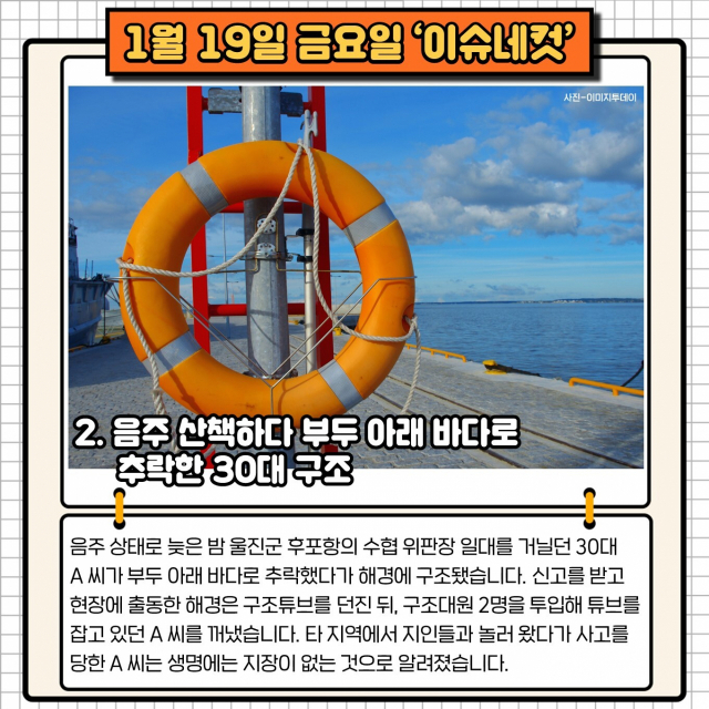 2. 음주 산책하다 부두 아래 바다로 추락한 30대 구조