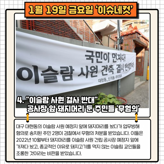 4. "이슬람 사원 결사 반대" 공사장 앞 돼지머리 둔 주민들 '무혐의'