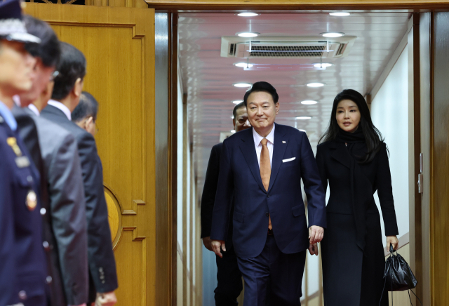 네덜란드 국빈 방문 일정을 마치고 귀국한 윤석열 대통령과 김건희 여사가 15일 성남 서울공항 2층 실내행사장으로 귀국하고 있다. 연합뉴스