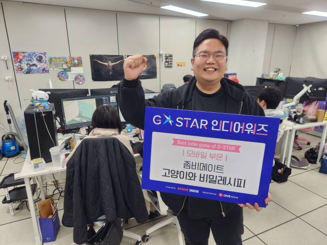 좀비메이트의 신작 ‘고양이와 비밀레시피’가 지난해 지스타에서 ‘모바일 베스트 인디게임’상을 수상했다. 좀비메이트 김윤수 대표의 모습. 남형욱 기자 thoth@busan.com