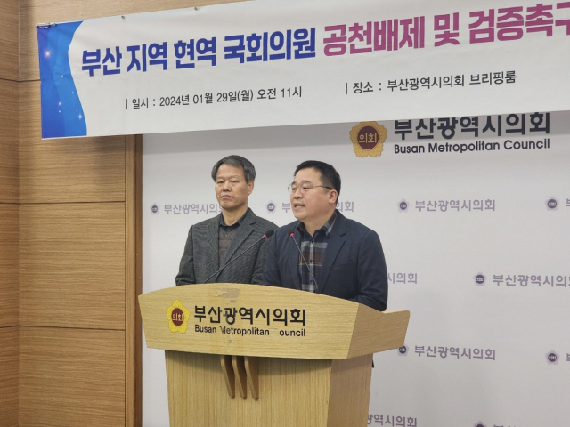 부산경실련이 제22대 총선을 앞두고 부산 국회의원들 명단을 발표하며 공천 배제와 검증을 촉구했다.