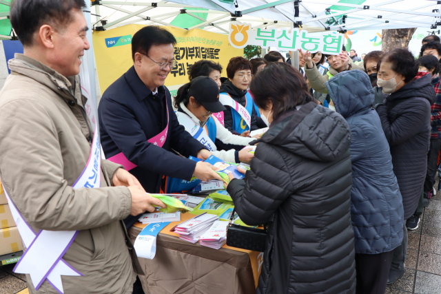1일 부산농협과 부산시가 '설맞이 농축산 목요직거래장터'를 열고 고향사랑기부제 홍보 활동을 펼쳤다. 농협은 이날 답례품 중 하나인 '가락쌀' 1kg을 배부했다. 농협중앙회 부산본부 제공