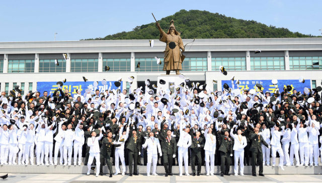 지난 2020년 해군사관학교 연병장에서 열린 제128기 학사사관 해군·해병대 소위 임관식에서 신임 장교들이 정모를 던지며 임관을 축하하는 모습. 해군 제공