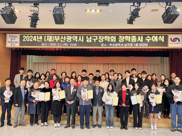 (재)부산남구장학회(이사장 황의순)는 지난 1일 남구청(구청장 오은택) 1층 대강당에서 2024년도 장학증서 수여식을 가졌다.