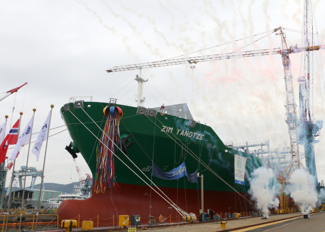 6년 만에 상선시장 재진입 HJ중공업, 컨선 2척 동시명명식