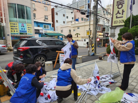 한국자유총연맹 양정1동위원회(위원장 이병화)에서는 지난 2월 3일 16시부터 다가오는 설 명절을 맞이하여 회원 등 20여 명과 함께 『365일 태극기 게양 시범거리』(동평로, 범양로일대)의 훼손된 태극기를 정비했다.