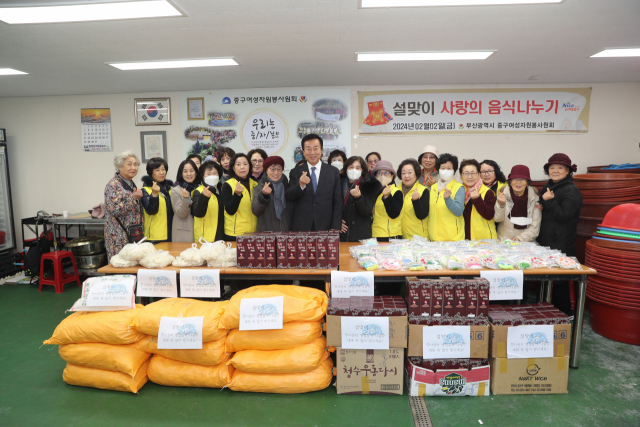 부산 중구여성자원봉사원회(회장 조재숙)는 최근 ‘설맞이 사랑의 음식 나누기’ 활동으로 장애인·조손가정 등 어려운 이웃 121세대를 방문해 떡국 떡과 참기름 등을 전달했다.