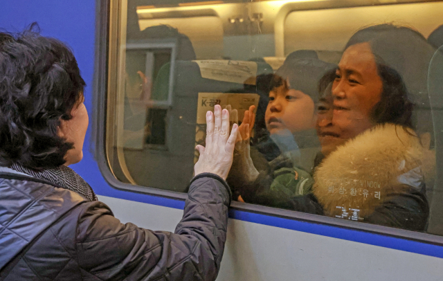 설 연휴 마지막 날인 12일 부산 동구 부산역에서 명절을 보내고 돌아가는 자녀들이 부모님과 작별 인사를 나누고 있다.