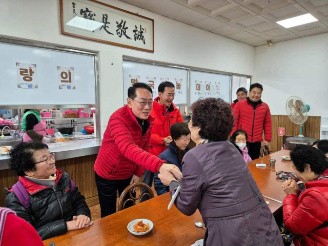 제22대 국회의원 선거가 불과 2개월 앞으로 다가온 가운데 부산 북강서을 여야 후보들이 선거운동에 한창이다. 설 연휴를 맞아 현역인 국민의힘 김도읍(위) 의원과 더불어민주당 변성완 전 지역위원장이 유권자들과 반갑게 인사하고 있다. 각 후보 페이스북