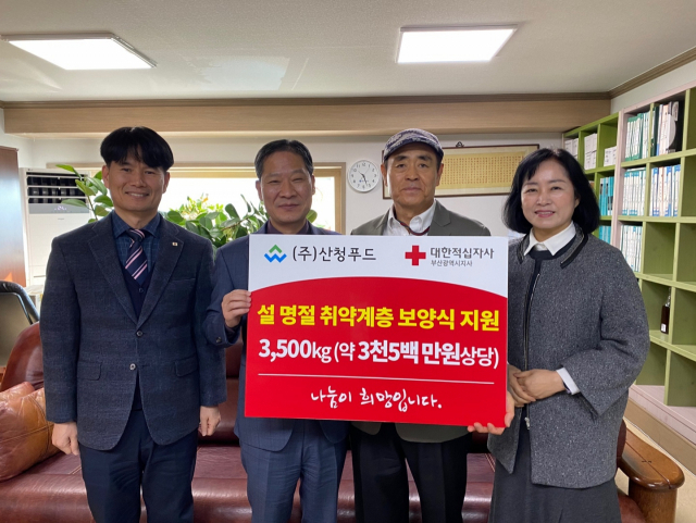 (주)산청푸드(대표이사 박재민)는 부산 지역 홀몸어르신과 장애인 가족 등 어려운 이웃에게 보양식 재료로 국거리용 한우 사골 3500kg(3500만 원 상당)을 대한적십자사 부산시지사(회장 서정의)에 전달했다.