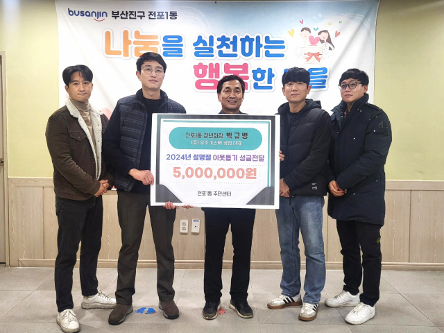 부산진구 전포1동 청년회장 박규병((주)우주가스팩공업 대표)은 최근 전포1동주민센터(동장 김종철)에 설맞이 이웃돕기 성금 500만 원을 전달했다.