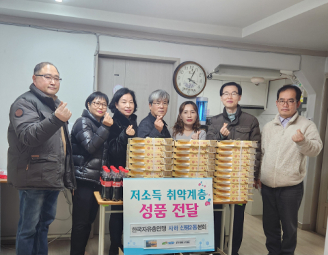 사하구(구청장 이갑준) 신평2동 한국자유총연맹은 지난 2월 7일, 설 명절을 맞이해 신평동 지역아동센터 아이들에게 피자 30판(50만 원 상당)을 후원했다.