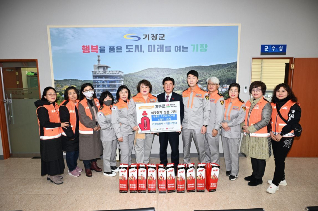 부산 기장소방서 의용소방대(대장 이경애)는 최근 기장군(군수 정종복)에 취약계층 지원을 위한 온누리상품권 100만 원과 가정용 소화기 10개를 기탁했다.