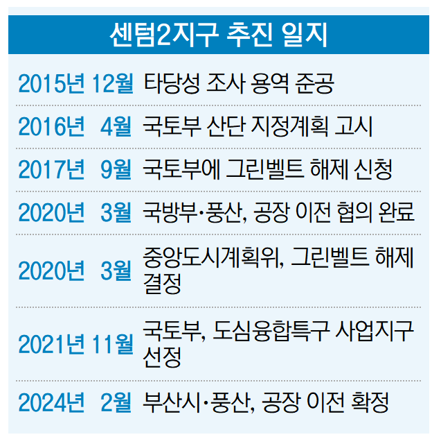 센텀2지구는 해운대구 반여·반송·석대동 일원 191만 2440㎡에 2조 2411억 원의 사업비를 들여 조성되는 첨단 ICT 허브 밸리다. 풍산 공장 부지는 전체 사업 면적의 과반인 102만㎡를 차지하고 있다.