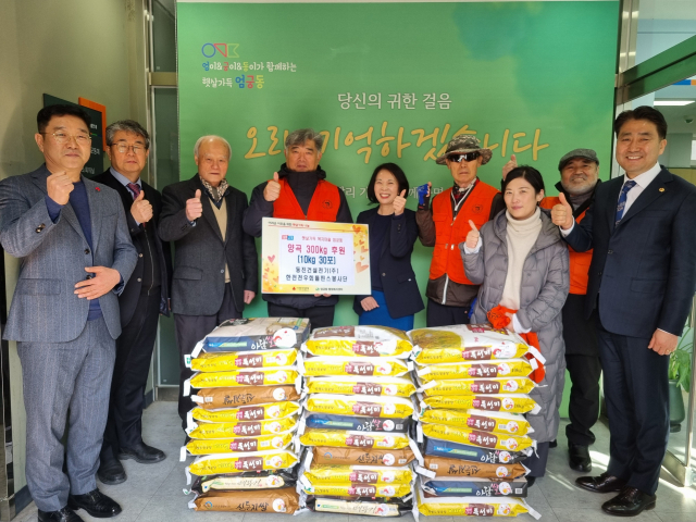동진건설전기·한전전우회 돌핀스봉사단, 엄구동 쌀 기탁