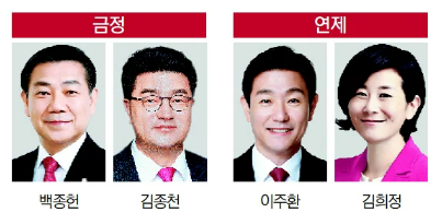 금정에서는 현역인 초선 백종헌 의원과 재차 도전장을 낸 김종천 영파의료재단 이사장이 양자 경선 방식으로 맞붙는다. 21대 총선 ‘금정구 공천 파동’의 두 주인공이다. 당시 현역이던 미래통합당 김세연 의원이 불출마를 선언하면 금정은 무주공산이 됐다. 김 이사장이 단수공천을 받았지만 당 지도부가 이를 번복하면서 부산시의회 의장을 지낸 백 의원이 결국 배지를 달았다. 김 이사장은 이번 총선을 앞두고 일찌감치 조직을 정비하며 설욕전을 준비하고 있다.