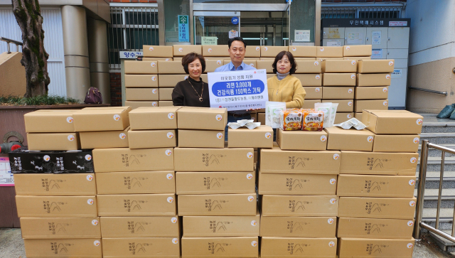 (주)에이앤원(대표 임희정)과 참앤들황토농원(대표 권종성)은 지난 15일 이웃돕기용 라면 3000개와 건강식품 150상자를 부산 북구 만덕3동 행정복지센터(동장 마현순)에 전달했다.