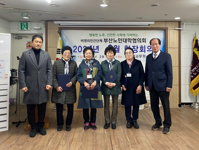부산노인대학협의회(공동회장 김만률·황영근)는 최근 부산노인복지진흥회 대강당에서 2월 학장회의와 2024년 정기총회를 개최했다.