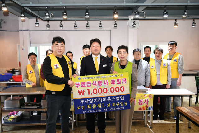 국제라이온스협회 355-A(부산)지구 부산양지라이온스클럽(회장 최준철)은 동래구 움트리나눔센터(대표 김양애)를 찾아 무료 급식 봉사와 성금 100만 원을 전달했다.