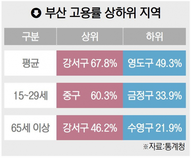 부산 고용률, 강서구 최고·영도구 최저