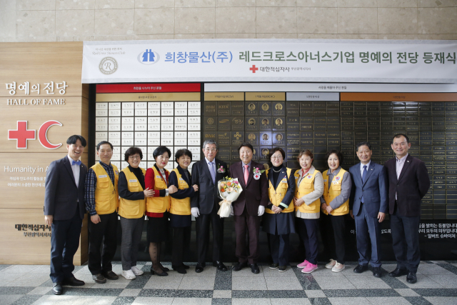 대한적십자사 부산지사(회장 서정의)는 지난 19일 희창물산(주)(회장 권중천)이 부산적십자사 ‘레드크로스 아너스기업’에 가입하고 명예의 전당 등재식을 가졌다고 밝혔다.