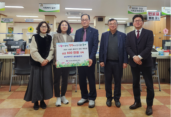 MG북부산새마을금고(박태익 이사장)는 지난 20일 북구 덕천1동 행정복지센터(동장 노계희)를 방문해 어려운 이웃을 위해 써 달라며 성금 600만 원을 기탁했다.