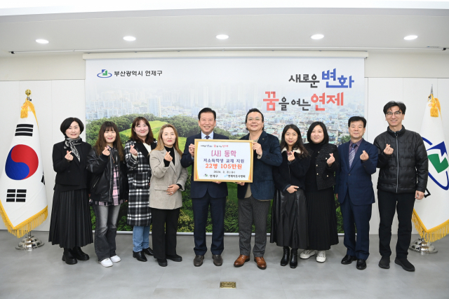 (사)동학(대표 남중현)은 지난 21일 연제구(구청장 주석수)에 저소득 중·고등학생 22명을 위한 신학기 교재(105만 원 상당)를 전달했다.