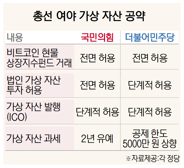 총선 메뉴로 다시 오른 ‘코인 공약’, 이번엔 밥상 차려질까