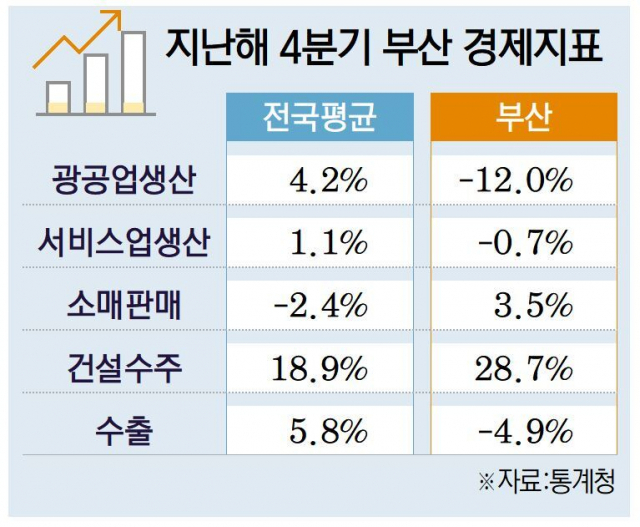 작년 4분기 부산 제조업 생산 12.0% 급감…소매판매는 3.5% 증가