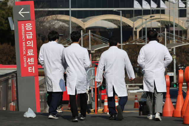 정부가 의대 증원 방침에 반발해 집단 사직서를 제출하며 근무지를 이탈한 전공의들의 병원 복귀 마지노선을 오는 29일로 제시했다. 서울의 한 대학병원에서 이동 중인 의료진. 연합뉴스