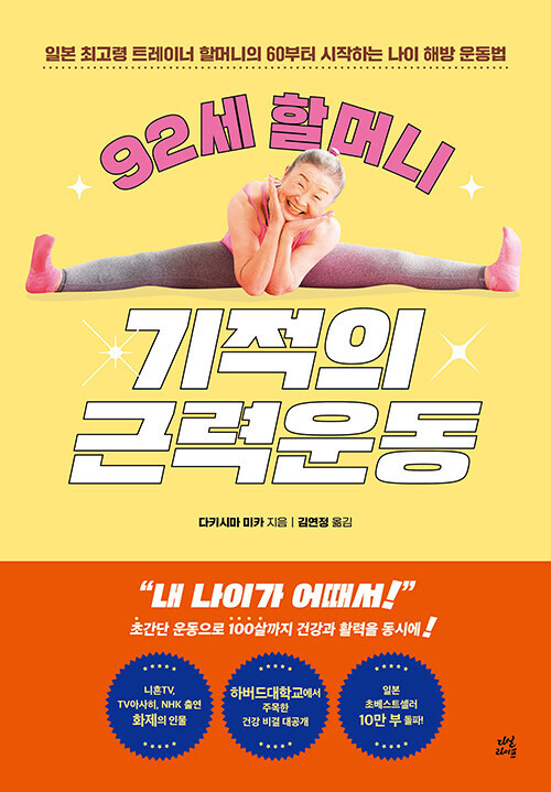 완벽한 다리찢기를 보여 주는 할머니의 모습이 너무 귀엽다. 그녀는 70세에 처음으로 다리찢기에 도전해 3년 만에 성공했다. 87세 일본 최고령 트레이너로 데뷔하게 된 저자의 인생 이야기다. 도전을 두려워하지 않는 삶의 태도가 나이가 들수록 더욱 활력이 넘치는 ‘파워 에이징’을 가능케 한다고 말한다. 다키시마 미카 지음/김연정 옮김/다산라이프/172쪽/1만 7000원.