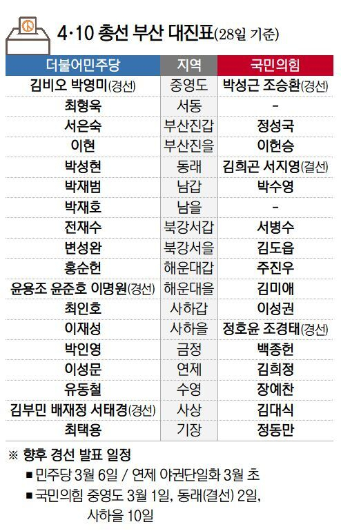 PK 40곳 중 국민의힘 본선 후보가 가려지지 않은 곳은 부산 4곳과 경남 4곳, 울산 3곳 등 11곳이다.