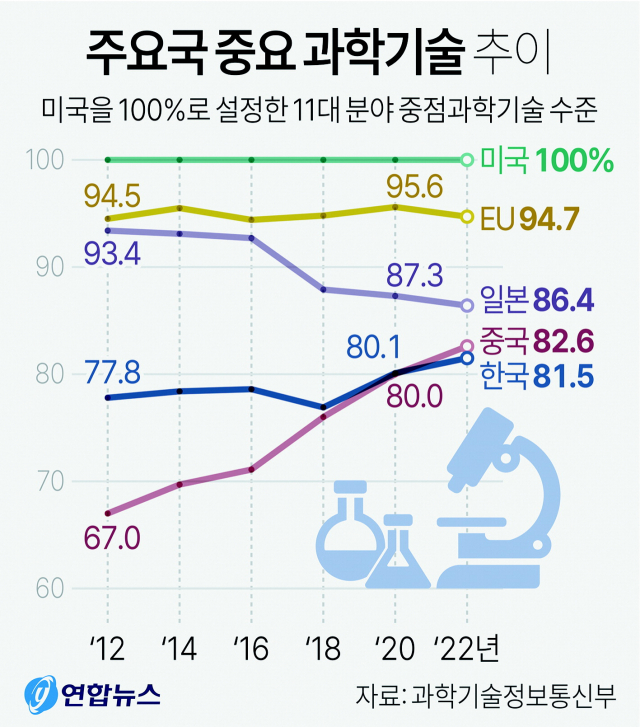 최고기술국 대비 中 82.6%, 韓 81.5%