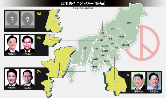 4·10 총선을 41일 앞두고 ‘선거구 조정’이라는 변수가 등장하면서 부산 총선 판세가 요동치고 있다. 이번 선거구 조정은 부산 7개 선거구에 영향을 주는 대형 변수다. 남구에선 예고됐던 박수영(국민의힘)-박재호(더불어민주당) ‘현역 의원 맞대결’이 확정됐다. 특히 ‘북을’ 선거구가 새로 만들어지면서 여야 모두 추가된 ‘낙동강 벨트’ 선거구 공천에 공을 들이는 모습이다.