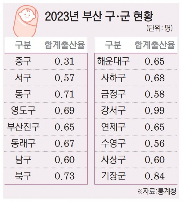 인구소멸 가속…부산 16개 구·군 중 12곳 ‘합계출산율 0.7명’ 하회
