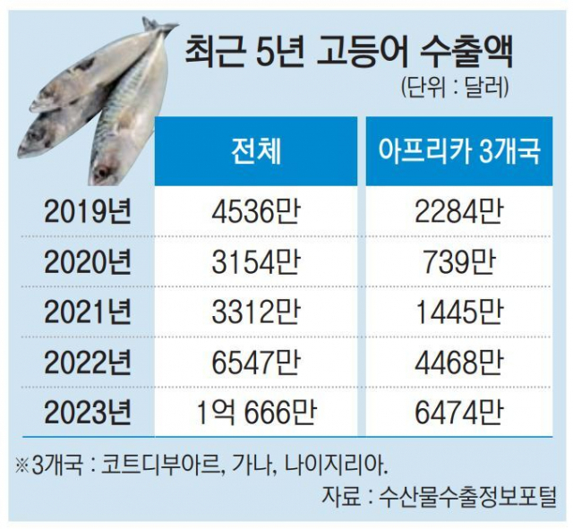 아프리카는 2019년 국내산 고등어를 다량 수입하며 주요 교역국으로 각광받았다. 다만 당시 수출액이 2284만 달러로 지난해 대비 3분의 1 수준밖에 되지 않았고 이마저 2020년 코로나19 유행으로 739만 달러까지 떨어졌다. 그러나 이듬해부터 폭발적으로 수출 규모가 늘면서 마침내 우리나라의 압도적인 최대 교역국으로 자리 잡았다. 수산업계에 따르면 아프리카가 국내 고등어를 선호하게 된 것은 대외 환경 때문이다. 본래 아프리카는 러시아와 일본에서 수산물을 많이 수입했다. 특히 러시아 오호츠크해에서 잡히는 청어와 정어리를 즐겨 찾은 것으로 알려졌다. 하지만 러시아-우크라이나 전쟁으로 서방의 무역 제재가 심해졌고, 일본도 후쿠시마 오염수 방류를 시작한 뒤 어선 출항을 줄여 수산물 수입이 크게 줄었다.