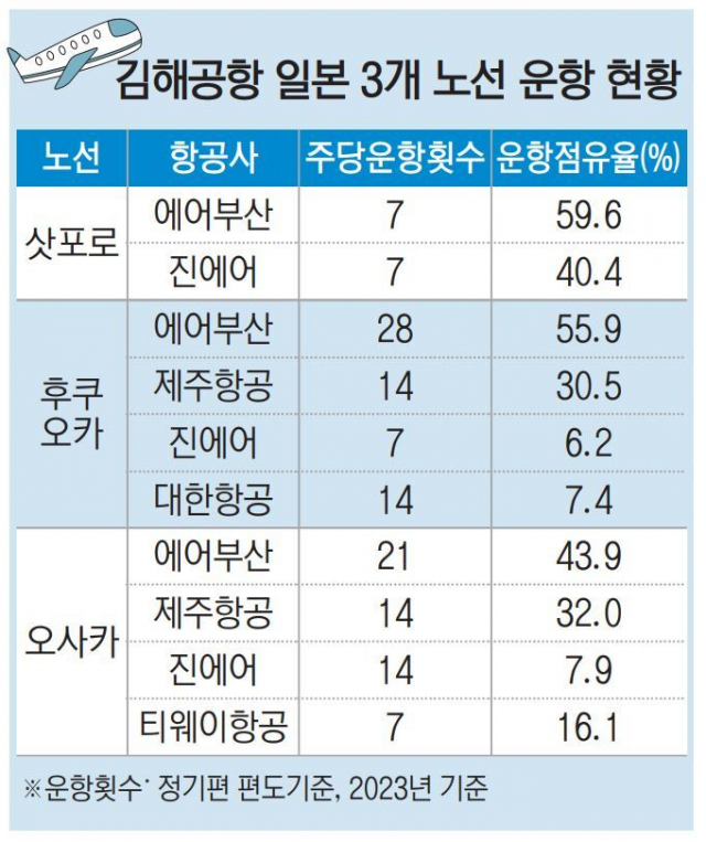 김해 출발 일본 노선 상당수 대상에
