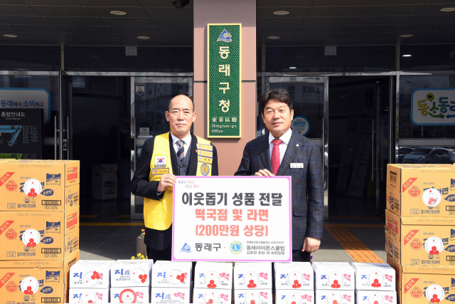 부산 동래라이온스클럽(회장 김종원)은 지난달 28일 동래구(구청장 장준용)에 취약계층을 위한 떡국점 1.7kg 10상자와 라면 30상자(200만 원 상당)를 전달했다.