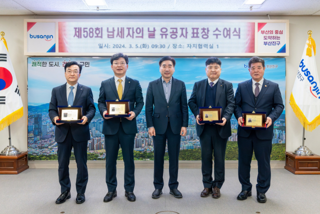 부산진구(구청장 김영욱)는 지난 5일 제58회 납세자의 날을 맞아 우수납세자와 세정 발전 유공자에 표창패와 우수납세자증을 수여했다.