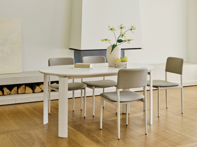 라모 스틸은 12mm 두께의 포세린 세라믹으로 식탁 상판을 구성했다. 모서리를 둥글게 처리해 부드러운 느낌을 주는 동시에 안전한 사용이 가능하다. 스틸 소재의 식탁 다리는 상판을 따라 곡면을 이루는 타원형 디자인을 적용해 견고하면서도 아름다운 디자인을 완성했다. 4인용과 6인용, 타원형과 직사각형, 화이트마블과 베이지마블 컬러 등 다양한 옵션을 선택할 수 있다.