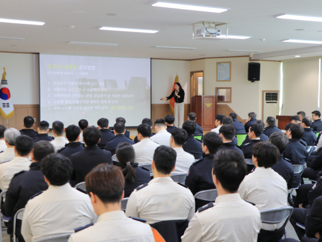 부산 항만소방서(서장 하길수)는 지난 14일 항만소방서 강당에서 직원을 대상으로 공직기강 확립과 청렴한 조직문화 정착 구현을 위해 갑·을질 예방 교육을 했다.