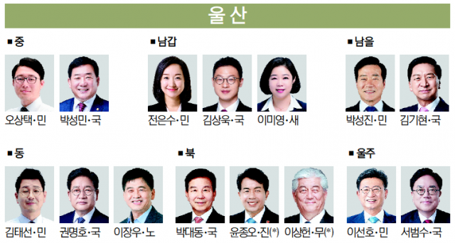 6곳 중 5곳 석권 국힘 ‘진보 1번지’ 북구 가져오나? [22대 총선 대진표 - 울산]