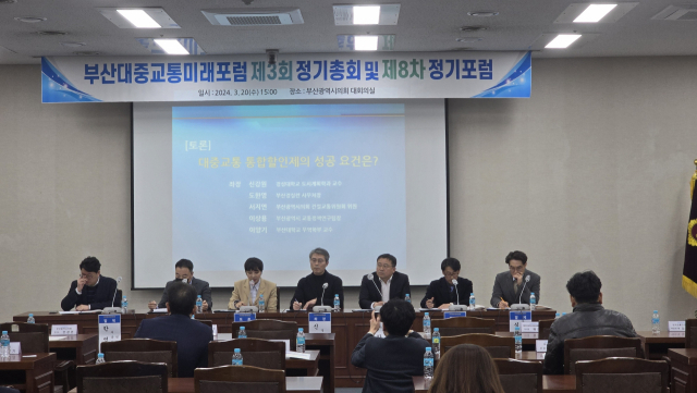 부산대중교통미래포럼이 20일 부산시의회에서 ‘대중교통 통합할인제의 성공 요건’을 주제로 정기포럼 세미나를 개최했다.